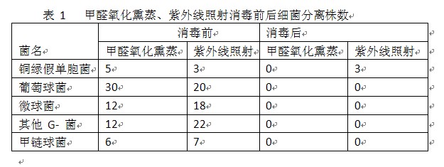 4.3紫外線照射消毒法 在各醫(yī)院較廣泛地應用其殺菌原理是紫外線光使微生物的 DNA 產(chǎn)生誘變和致死。但紫外線照射強度及消毒效果受多種因素影響 ,從表 1 兩種消毒效果比較可知甲醛氧化熏蒸消毒優(yōu)于紫外線照射消毒法。甲醛氧化熏蒸消毒效果顯著 ,取材方便、制作簡單 ,置入箱內(nèi)消毒不受其他條件影響。此方法在基層醫(yī)院更具有實用性。